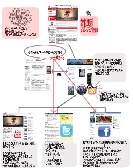 下記図のようにお客様がお持ちのWEBサイトもしくはブログをハブにして